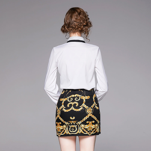 A playful outfit made of a long sleeve printed top and matching mini skirt. Made from light transparent mesh – ideal for dates, photos, or sunny days out.